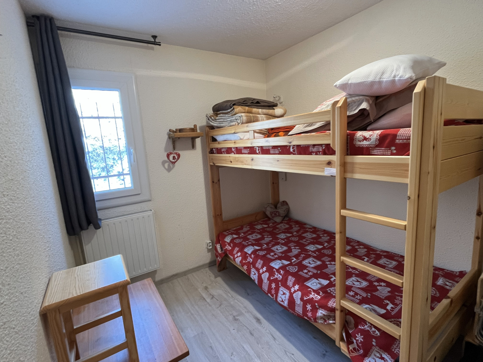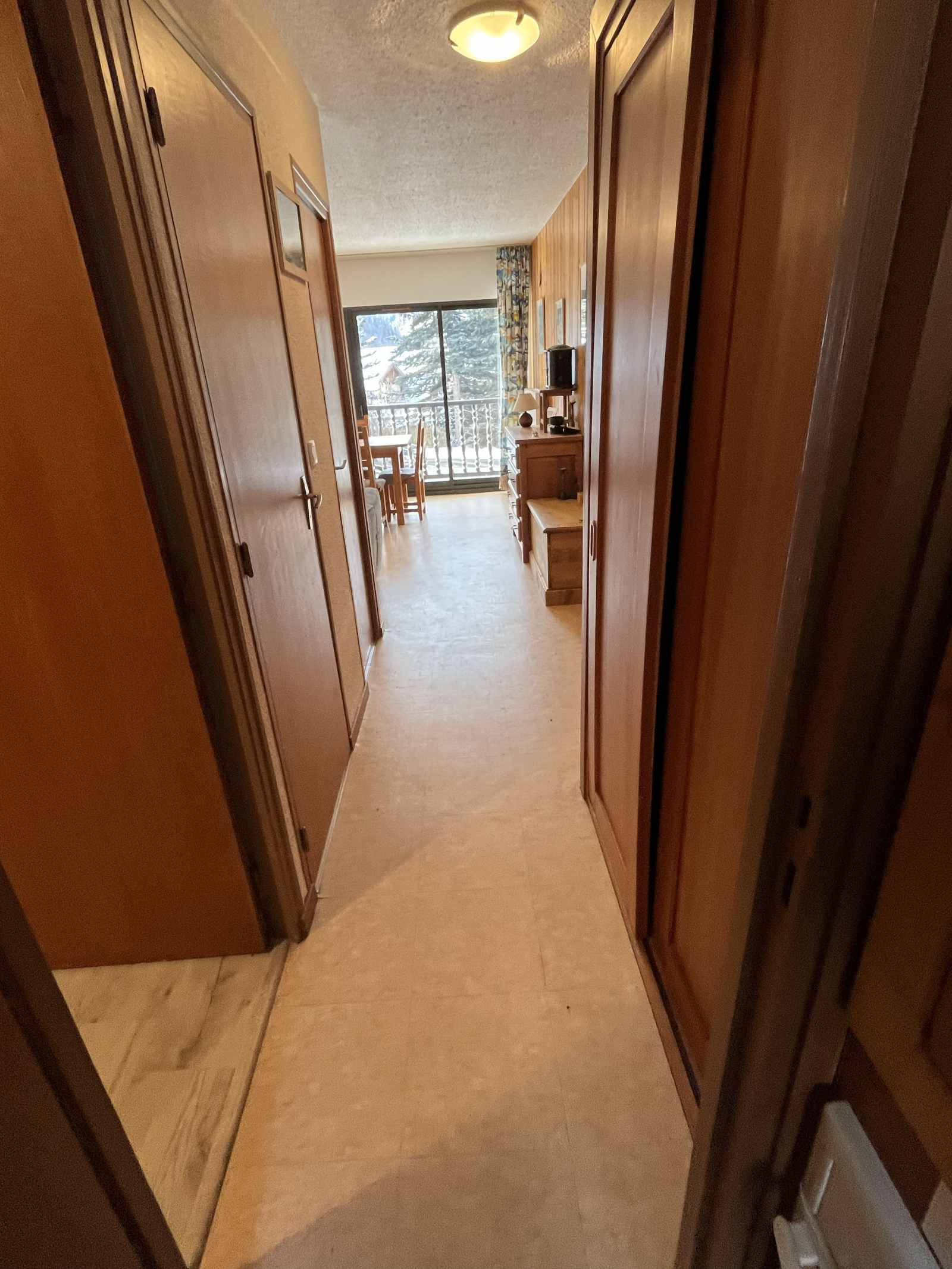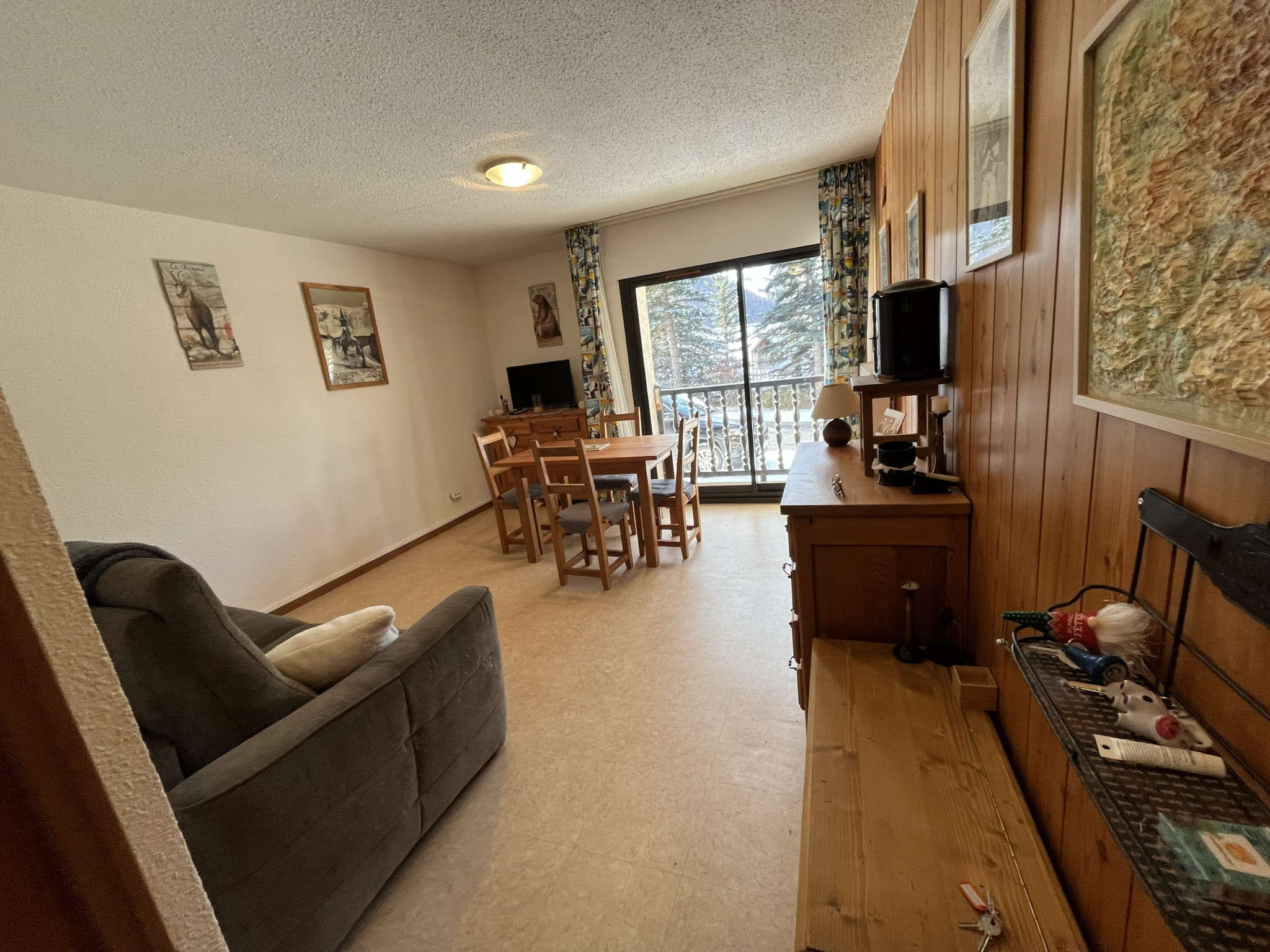 Un appartement de deux pièces au rez-de-chaussée, avec séjour, salle de bains chambre, cuisine et casier à skis, vendu meublé et équipé.